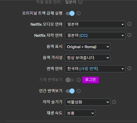 참고로 여기서 설정하는게 Netflix 자막 언어다.