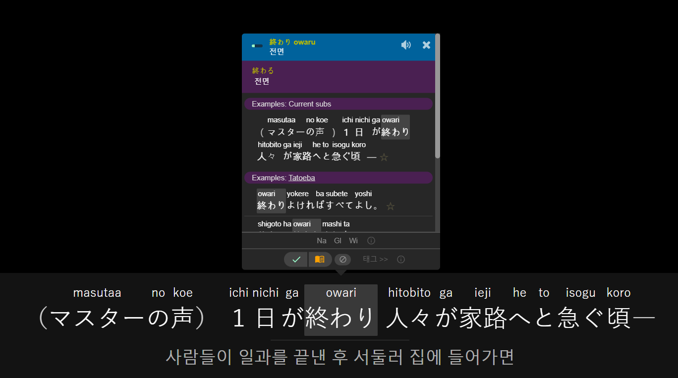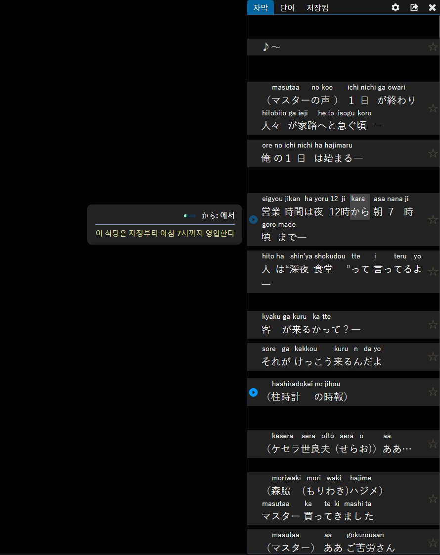 클릭 사전 기능은 Netflix 자막 언어에만 지원해주기 때문